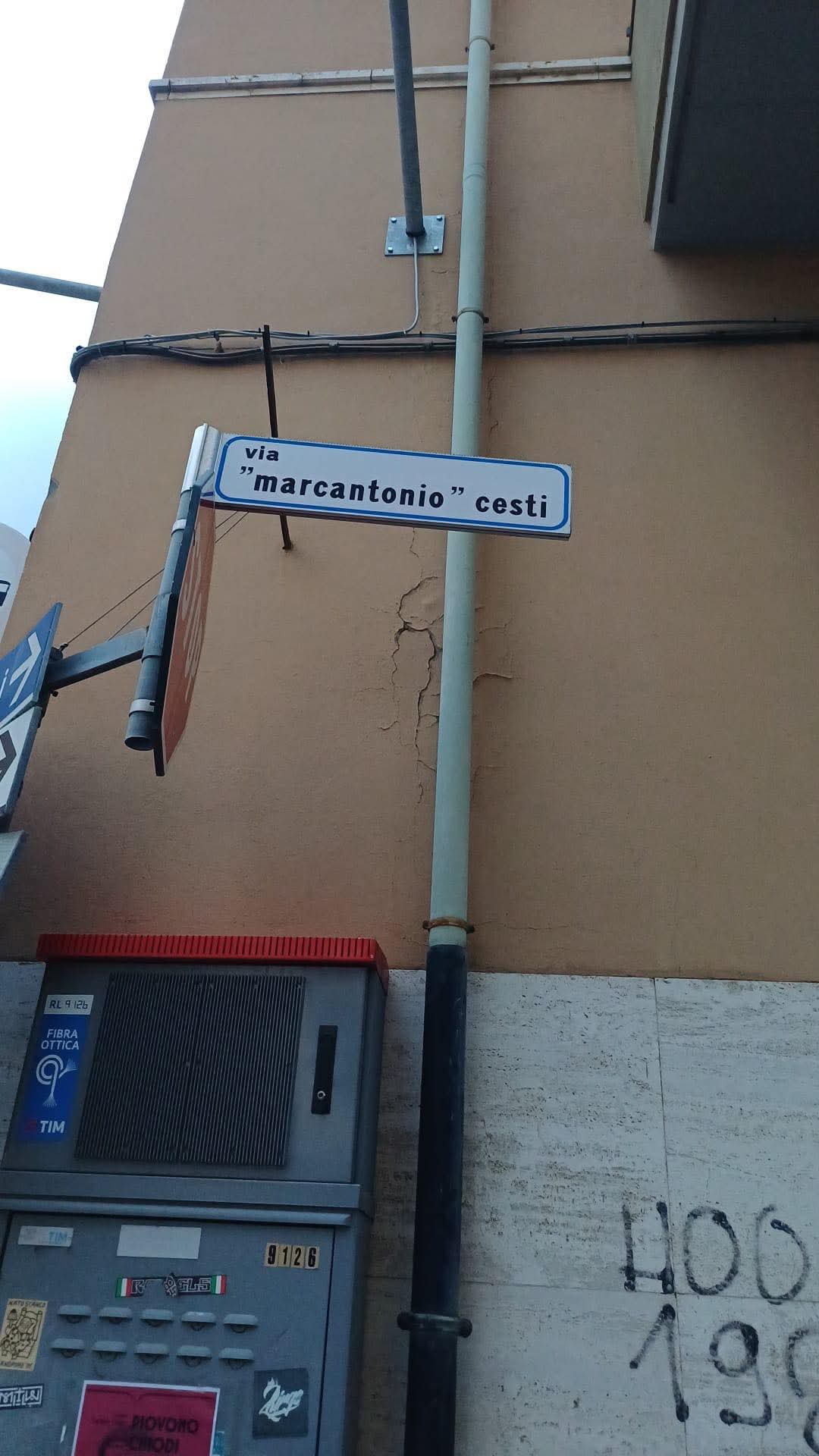 In allegato trasmetto foto del nuovo cartello indicatore della via Antonio Cesti. Gli errori, macroscopici e inaccettabili per chiunque abbia anche minima contezza di chi fosse il Cesti, sono i seguenti: 1) il suo nome é Antonio. Marcantonio fu un soprannome volto a svalutare la figura dell'illustre musicista concittadino. 2) l'uso scorretto delle virgolette; a parte il fatto che sono orientate allo stesso modo -dimostrando che chi le ha messe non ne conosce neanche l'uso- come si può dare un titolo virgolettato a una via? 3) la prima lettera di nome proprio é Maiuscola e non minuscola. Alla luce di quanto elencato, auspichiamo in un immediato ripristino del titolo corretto della via.
