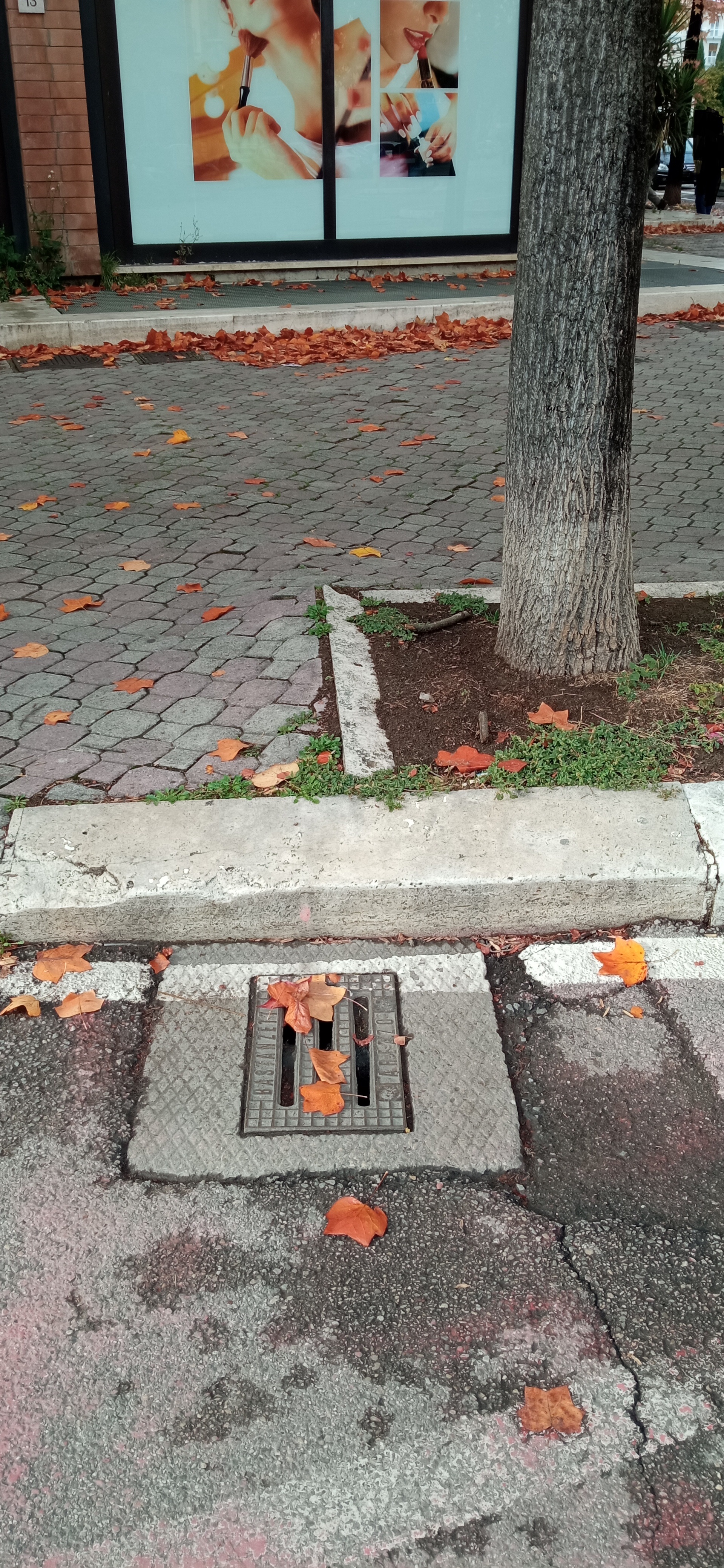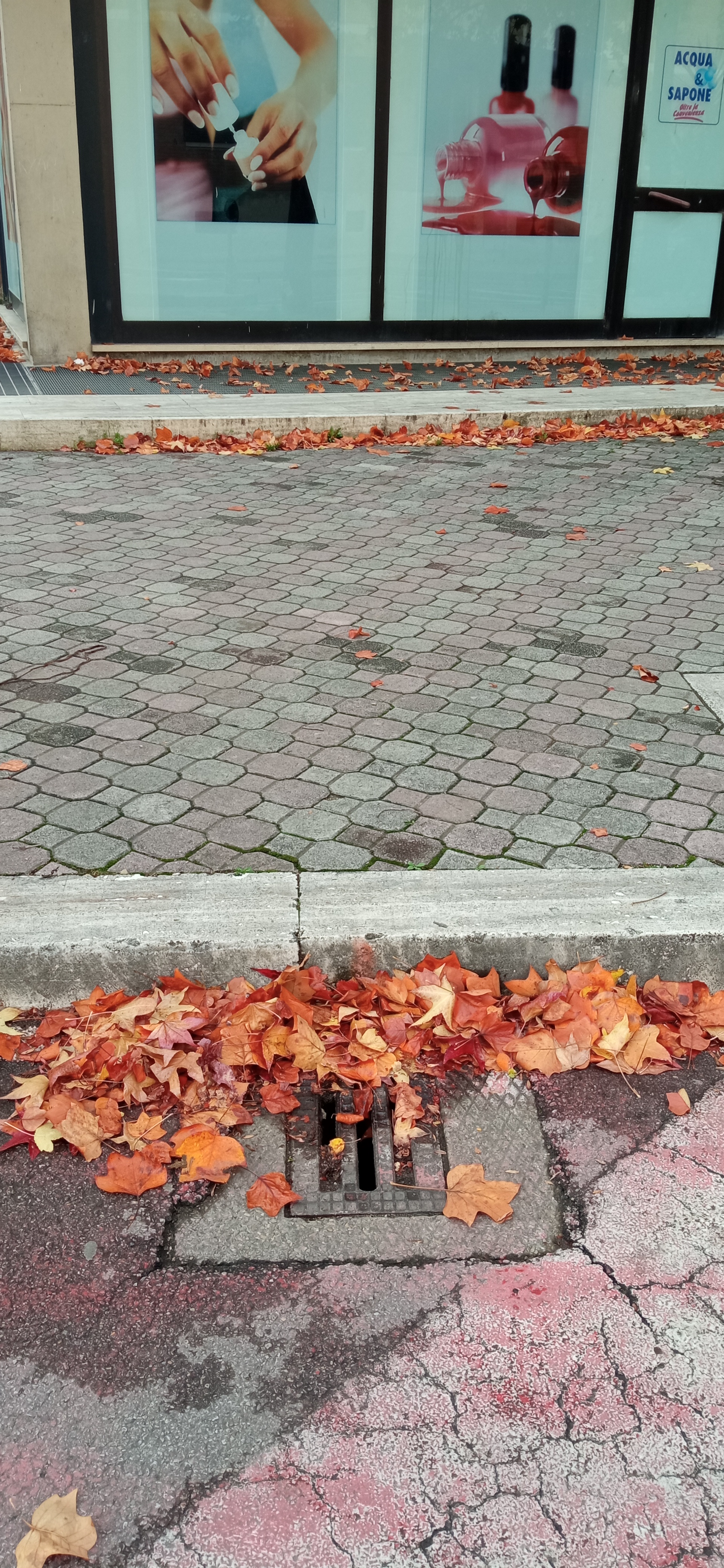 Buongiorno Ci sono le fogne ostruite da terra secca e soprattutto foglie. Arezzo via guelfa all' altezza di Acqua e sapone.