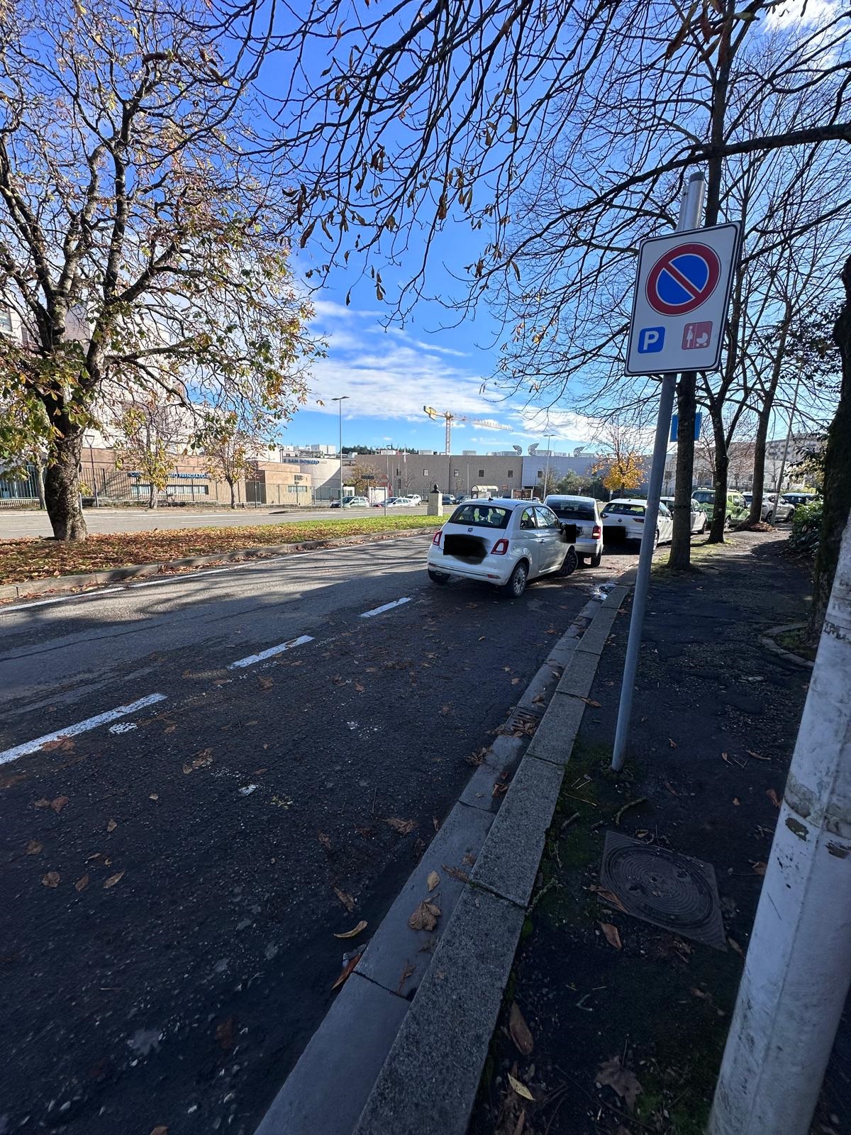 I due parcheggi Rosa in via P. Nenni, opposto Ospedale, le strisce orizzontali non sono più visibili