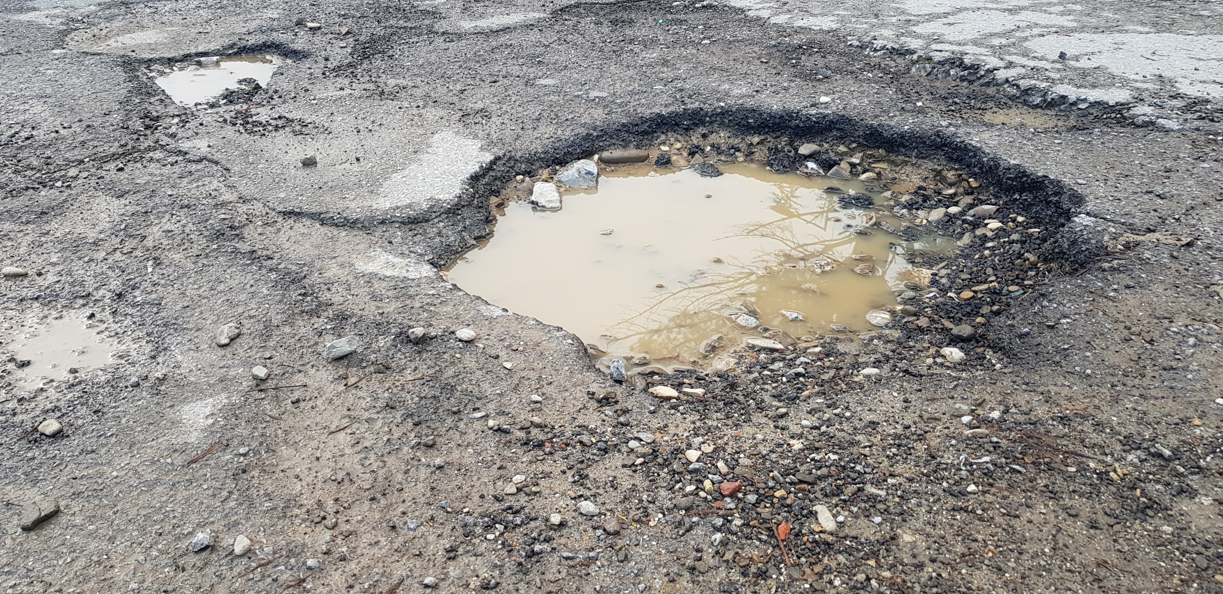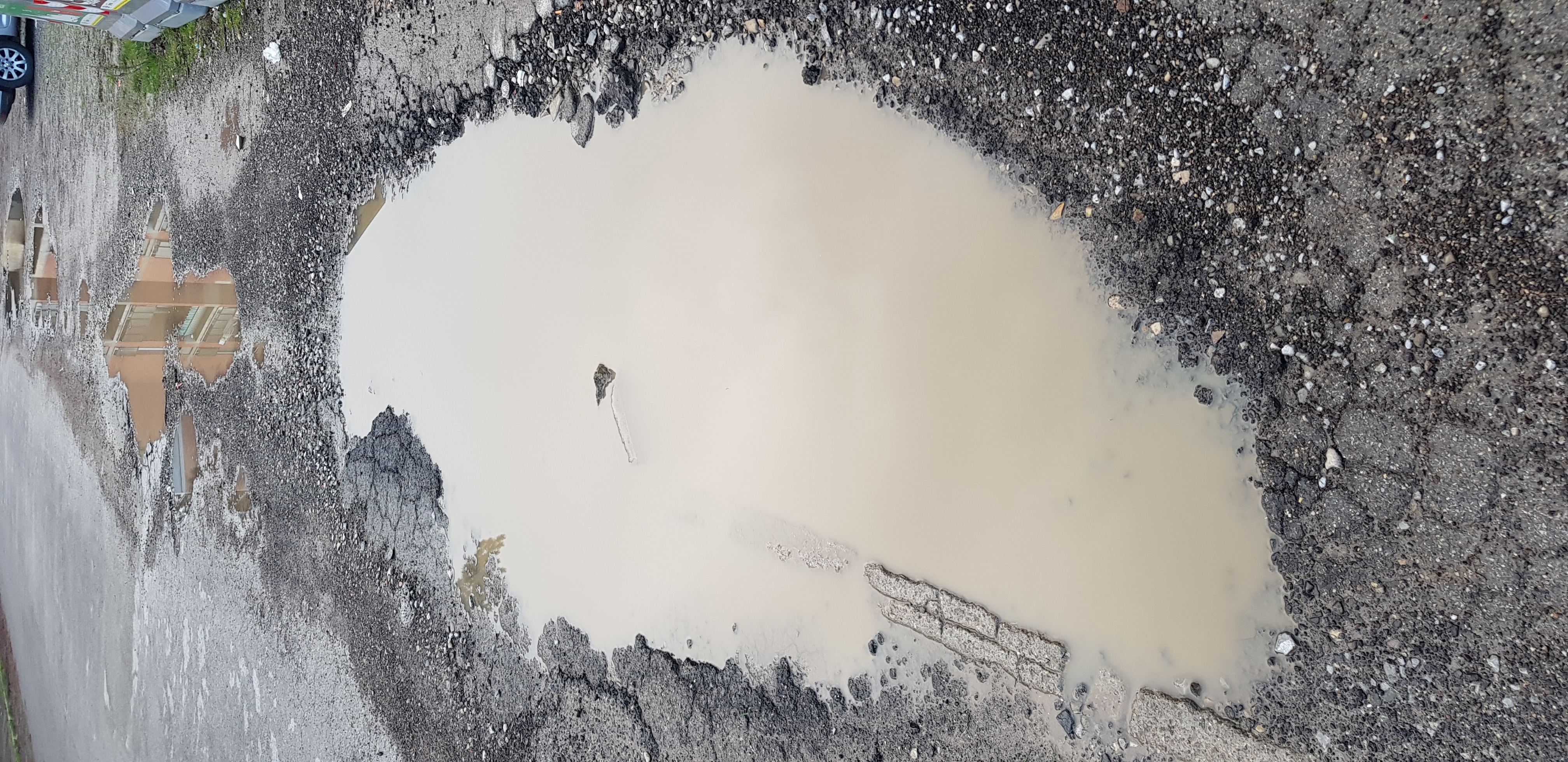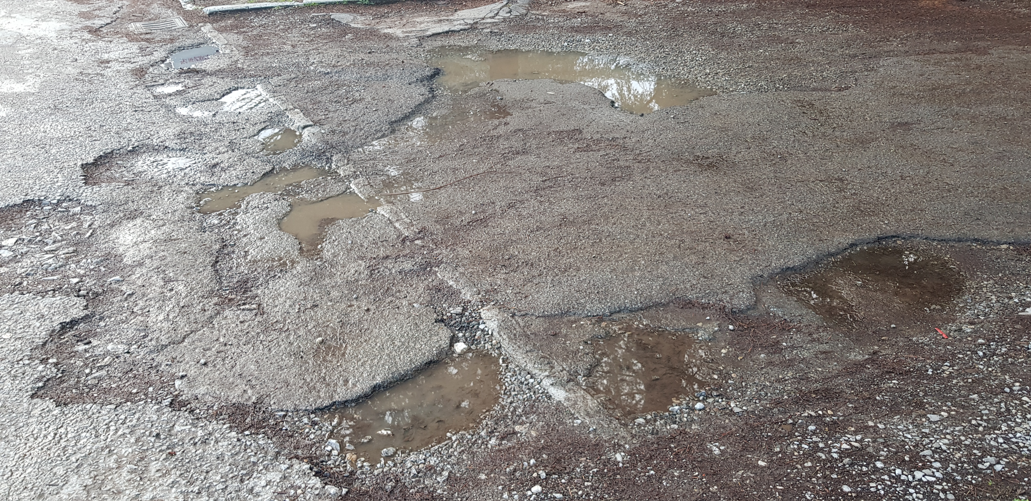 A diverse altezze della strada ci sono molte buche grandi e profonde. Sono molto pericolose per tutti, sia chi viaggia con mezzi che pedoni.