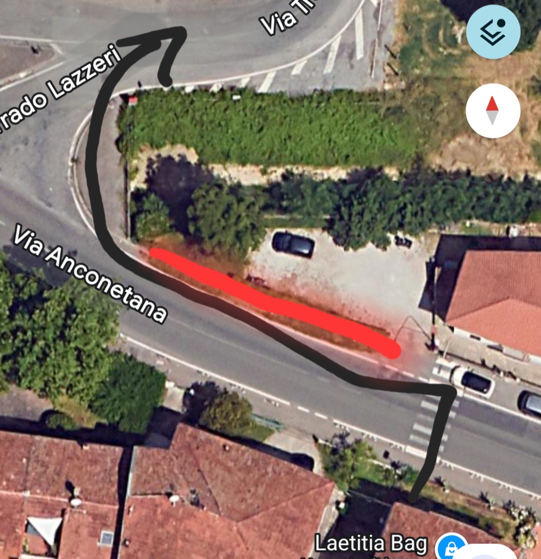 A fronte dei numerosi lavori eseguiti nella zona per la sicurezza del letto del fiume (via Anconetana) si richiede la realizzazione di un marciapiede nel tratto segnato in rosso nell'allegato a fronte della elevata pericolosità del tratto.