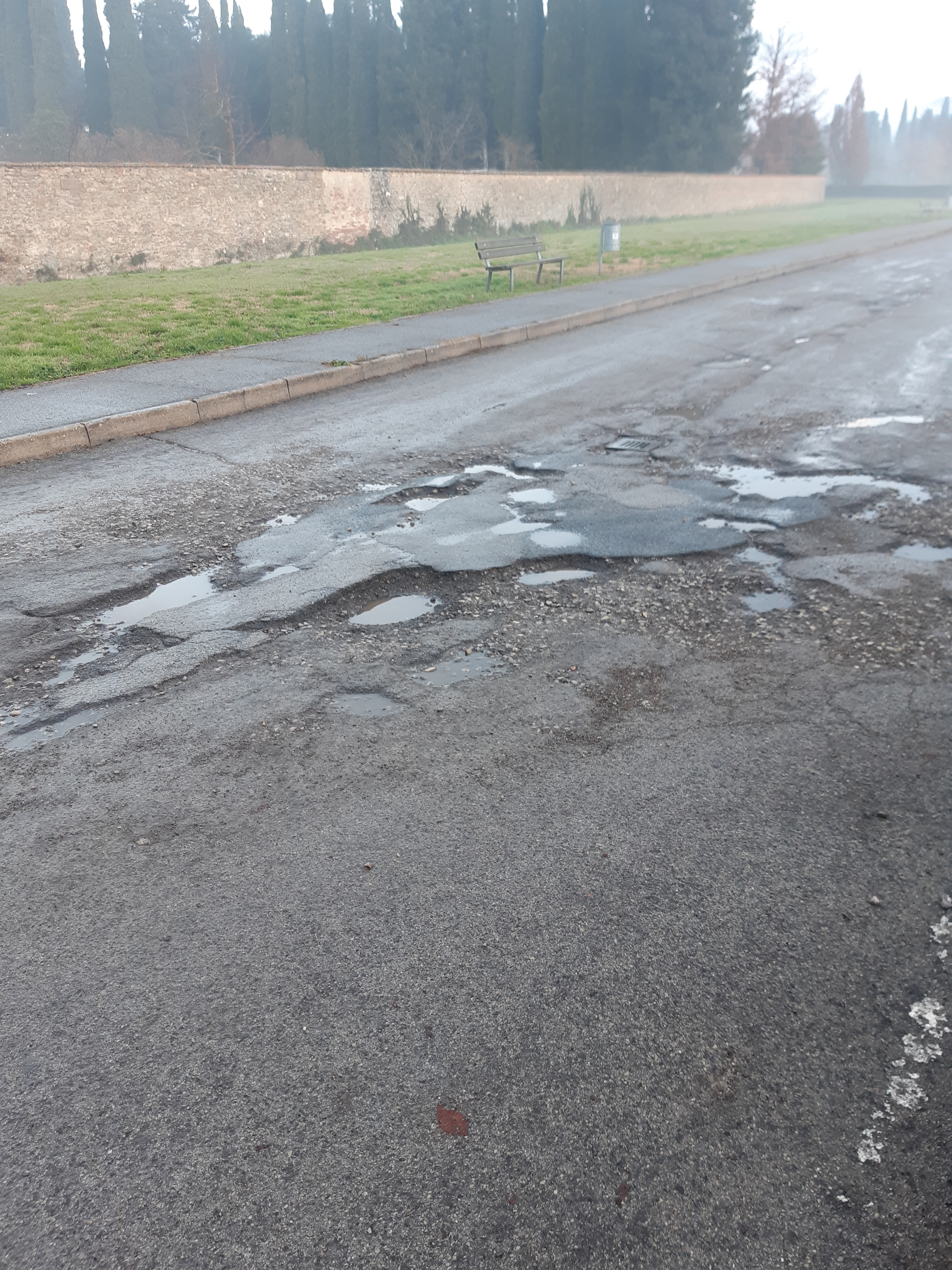 Segnalo il generale stato di degrado del manto stradale all'interno del parcheggio davanti al Parco di Villa Severi.
