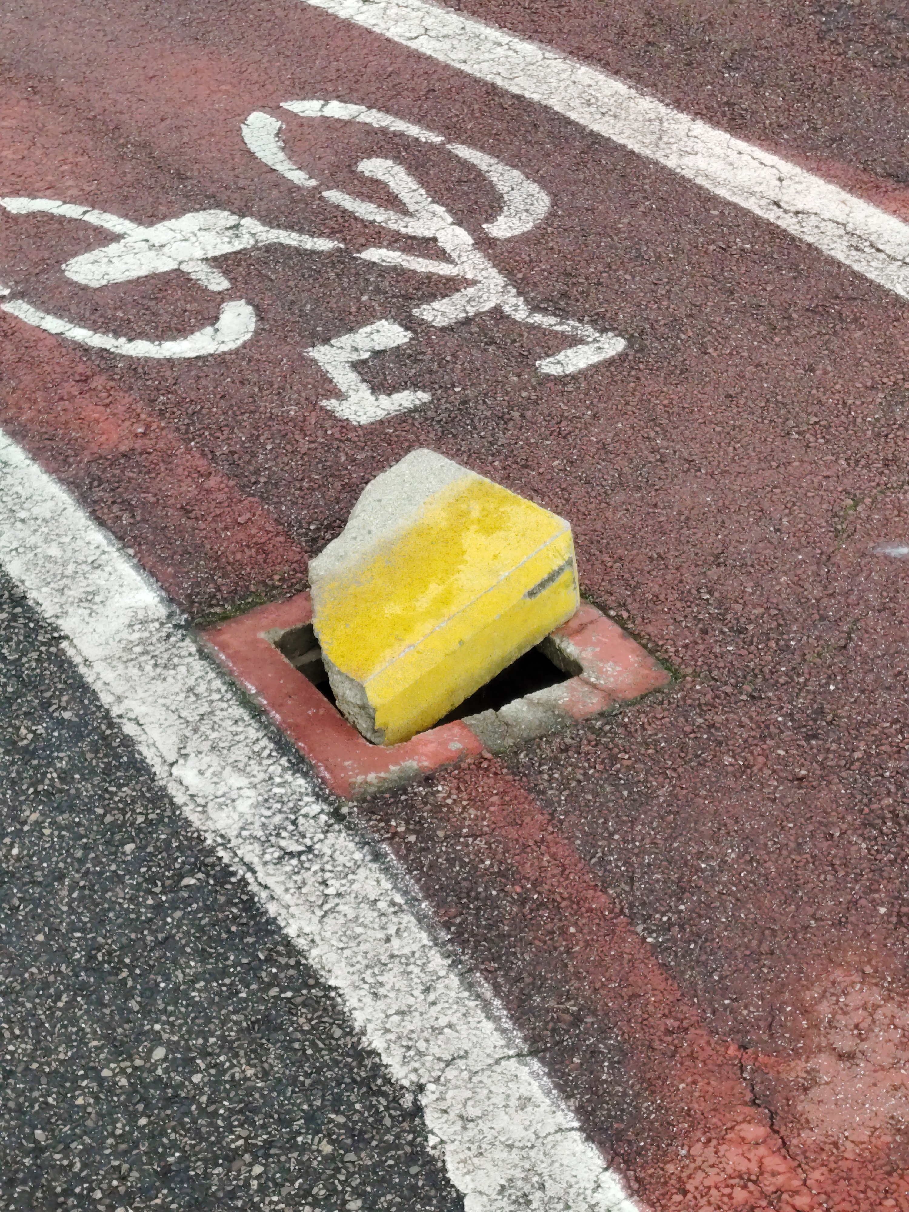 #3735 — Pozzetto su pista ciclabile coperto con pezzo di pietra pericoloso