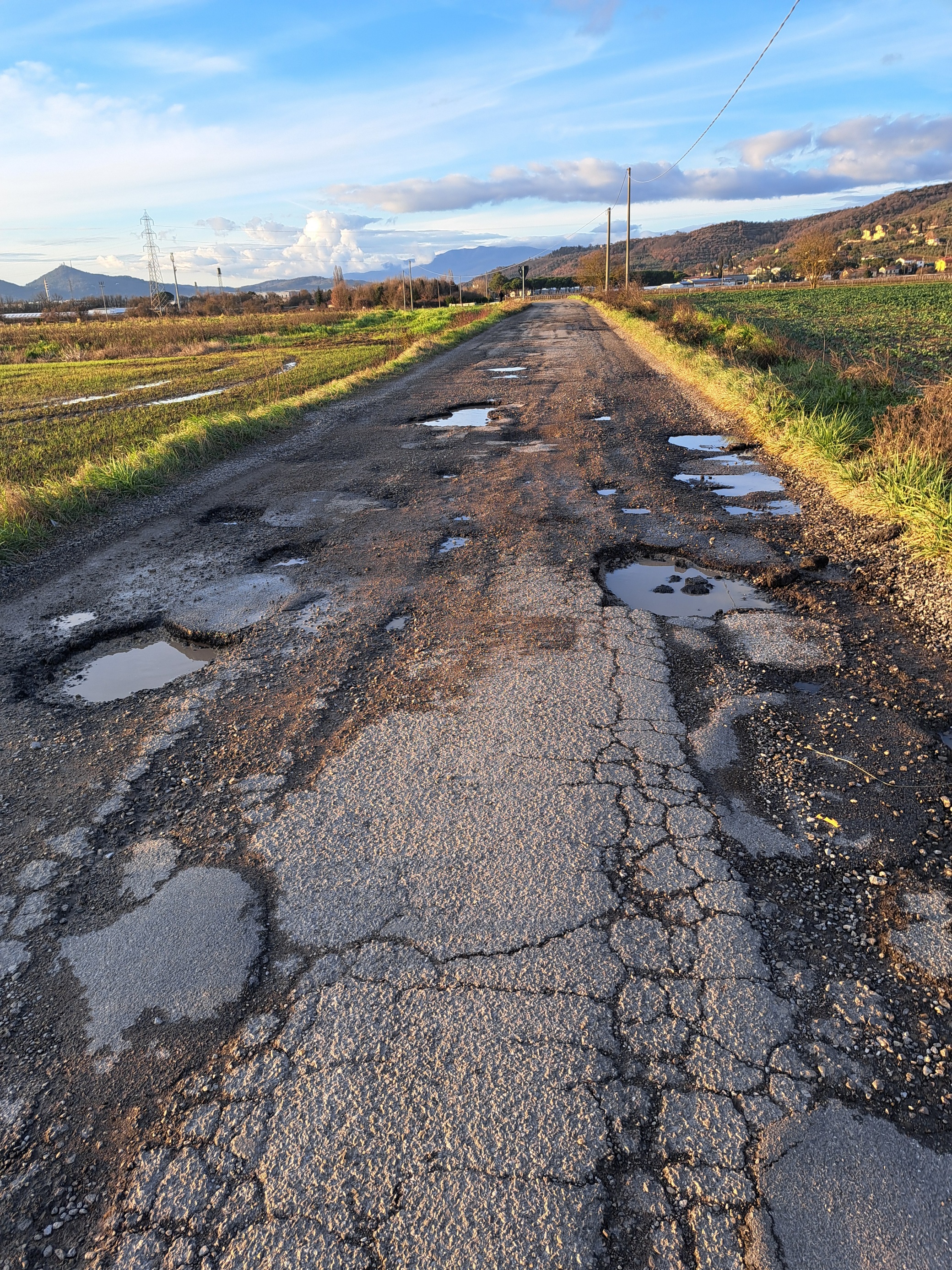 Buche sparse e numerose sulla strada che collega la zona Equestrian Centre al semaforo di San Zeno
