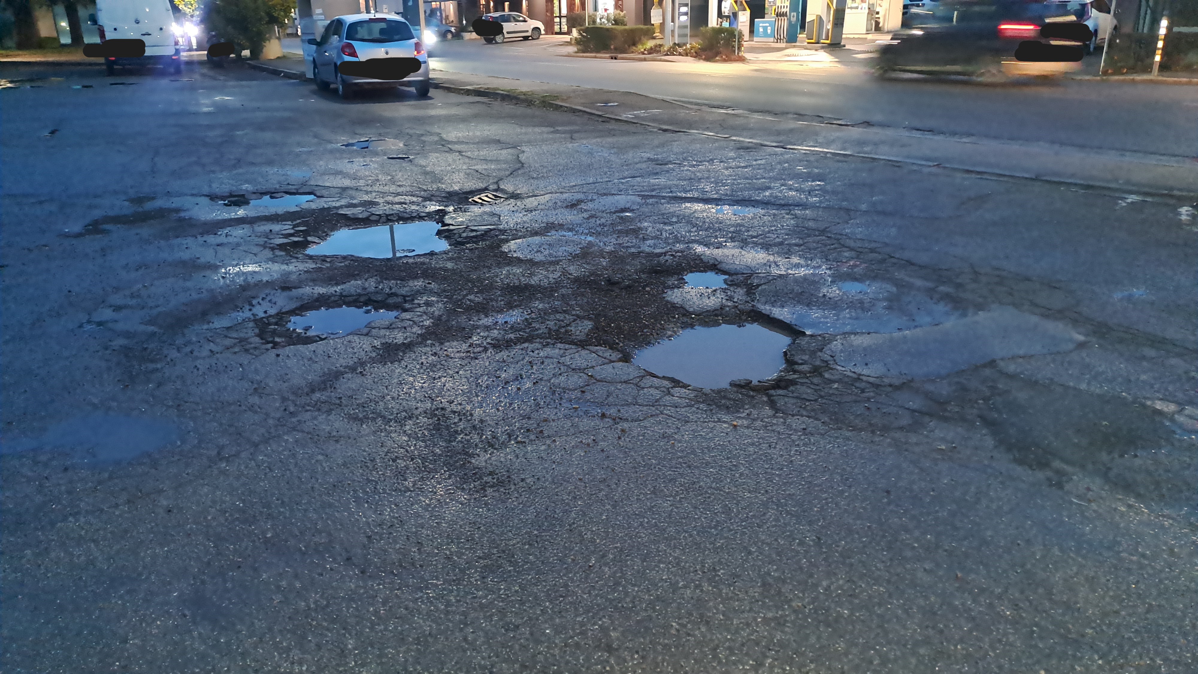 Nel parcheggio del centro commerciale di Quarata affianco alla pizzeria 7 Forchete abbiamo questi crateri profondi oltre 20 cm.Parcheggio affianco alla pista pattinaggio per bambini,dove giocano in bicicletta.Evitiamo che qualche bambino si fa molto male
