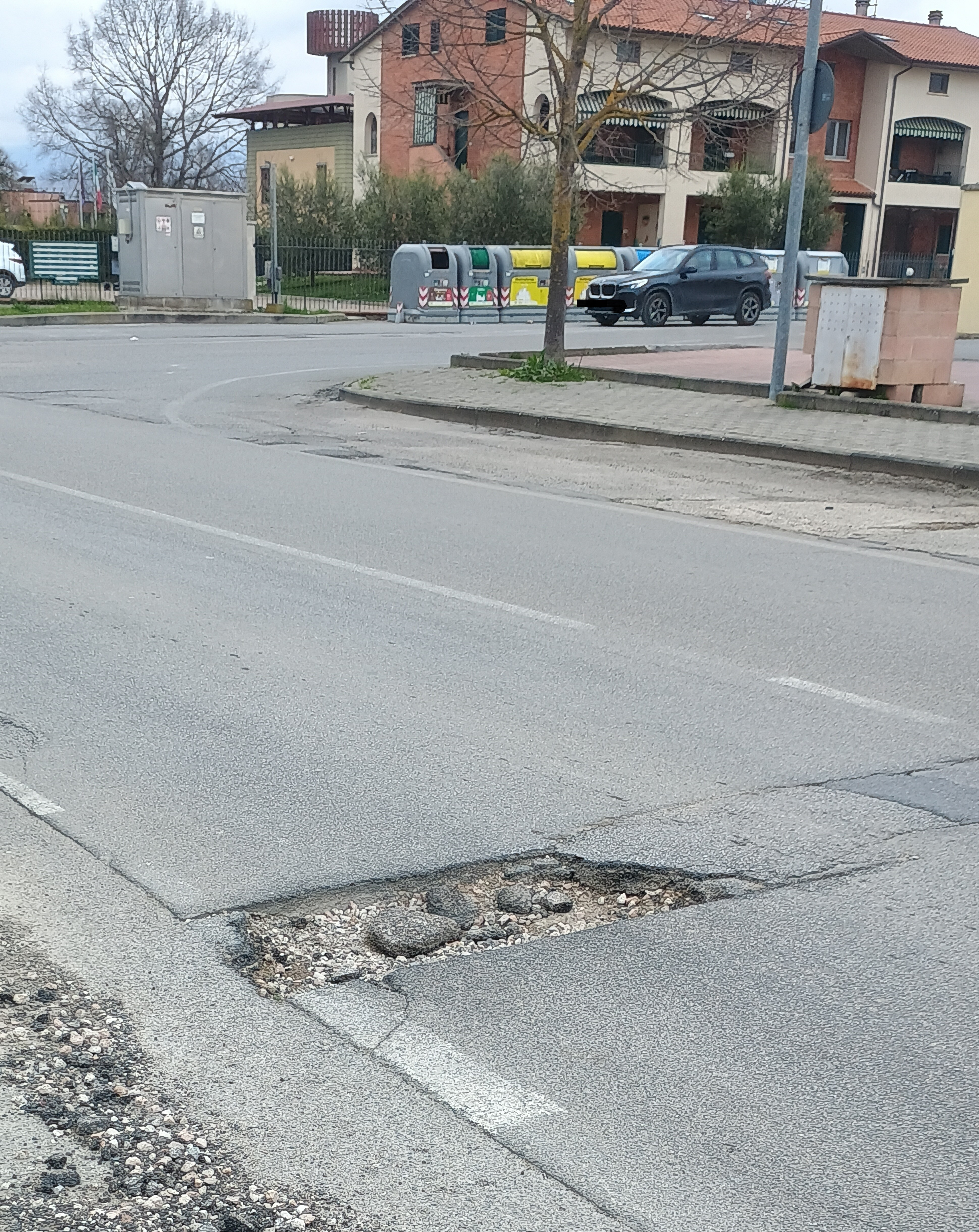 in Viale Santa Margherita davanti al supermercato gala e alle due case in corrispondenza della via principale è presente un buco nell'asfalto, il problema principale del suddetto buco non è tanto l'impossibilità di passare con le macchine per i residenti ma più il fatto che il cratere ricopre metà della corsia di marcia, rendendo pericolosissimo il transito quotidiano di macchine ma soprattutto di ambulanze essendo zona nei pressi del centro chirurgico.