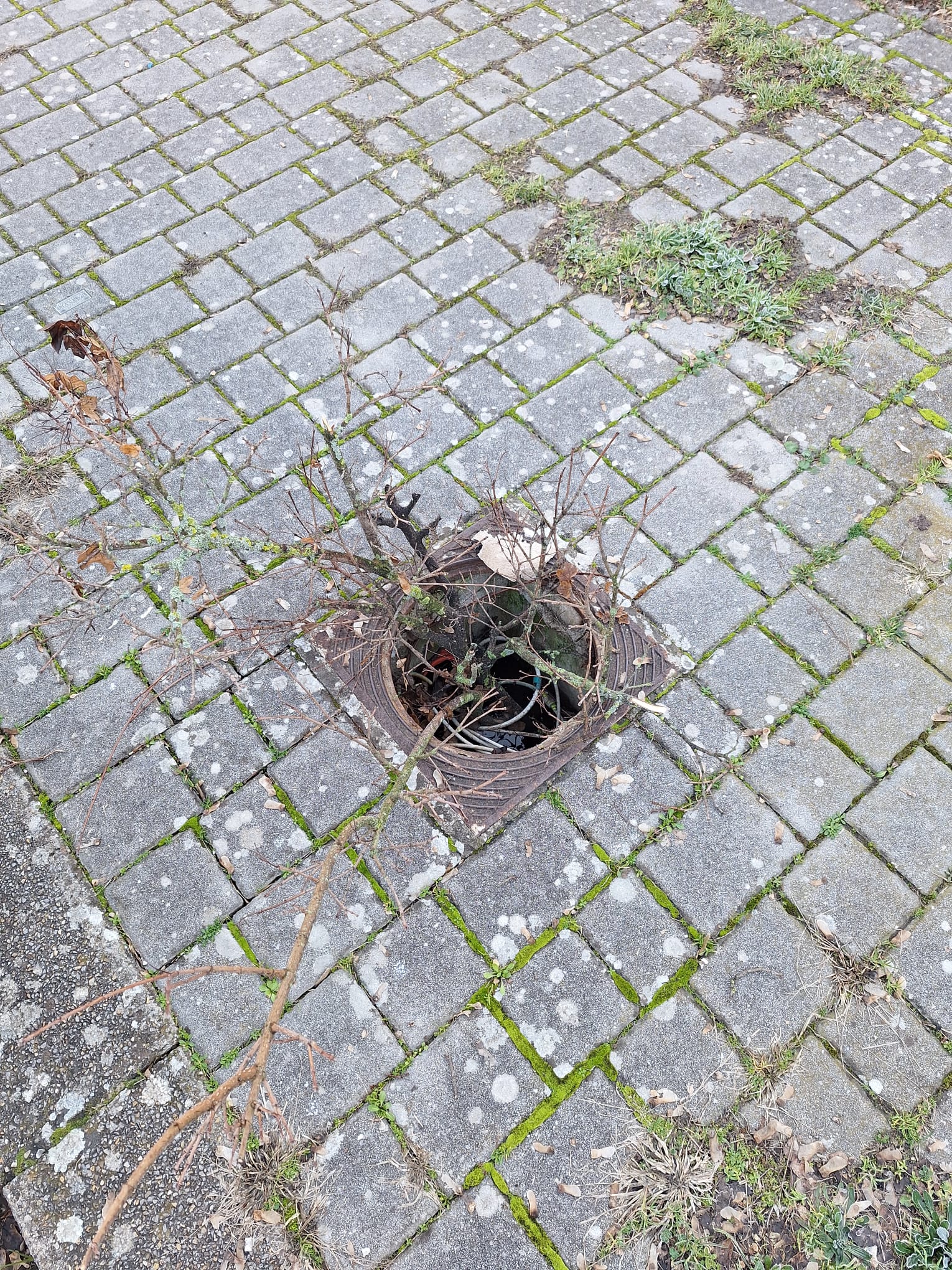 All'interno del tombino si notano dei cavi, presumo dell'illuminazione pubblica.