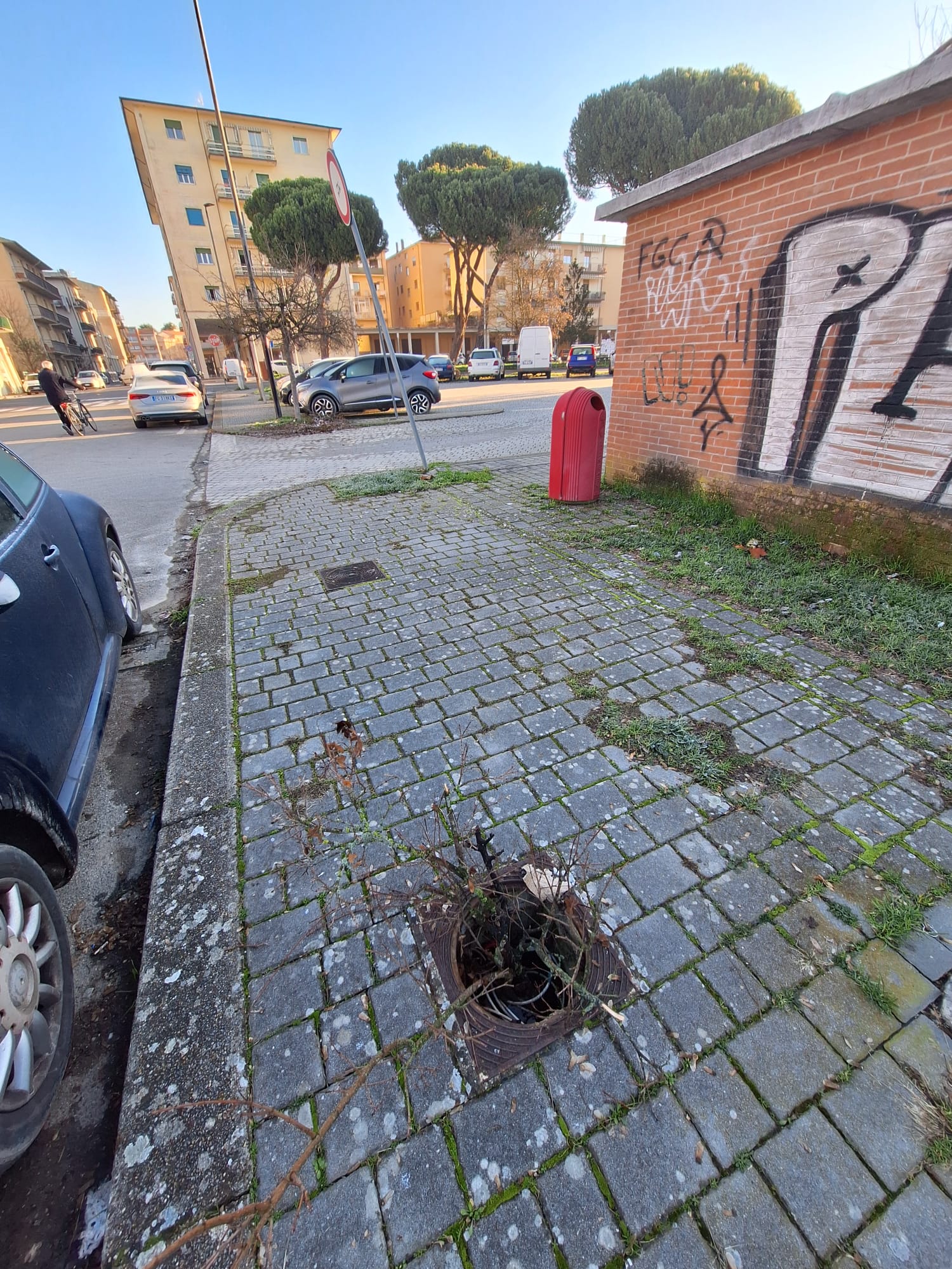 Il tombino risulta pericoloso per pedoni, per i disabili ma anche per i passeggini ( a pochi passi è presente una scuola elementare e dell'infanzia).